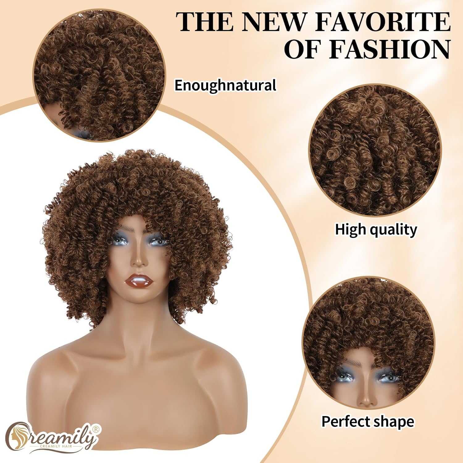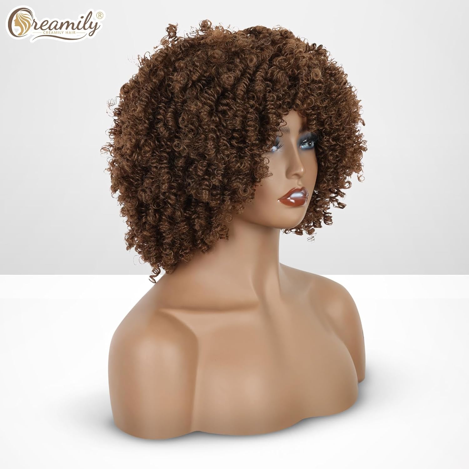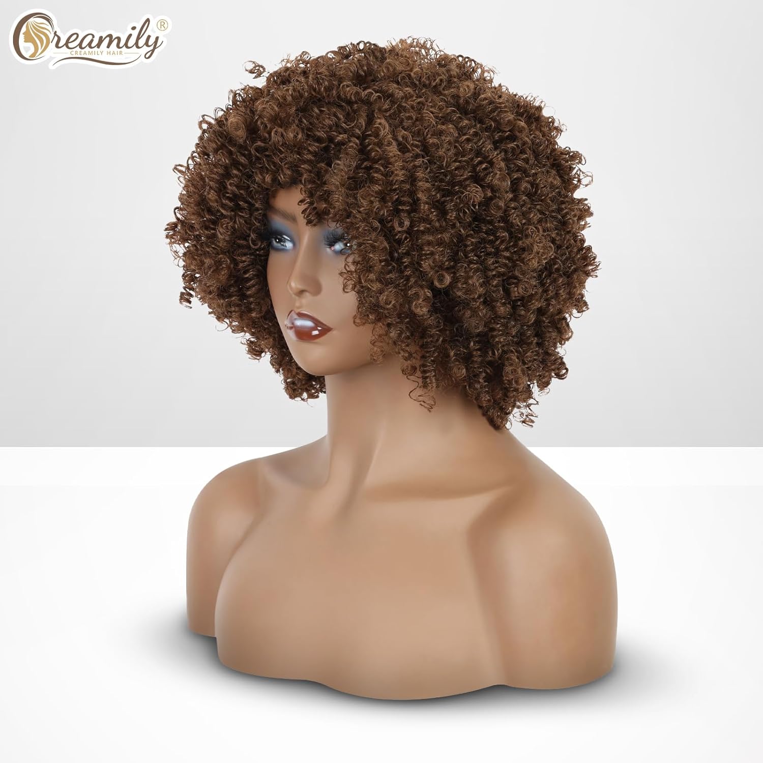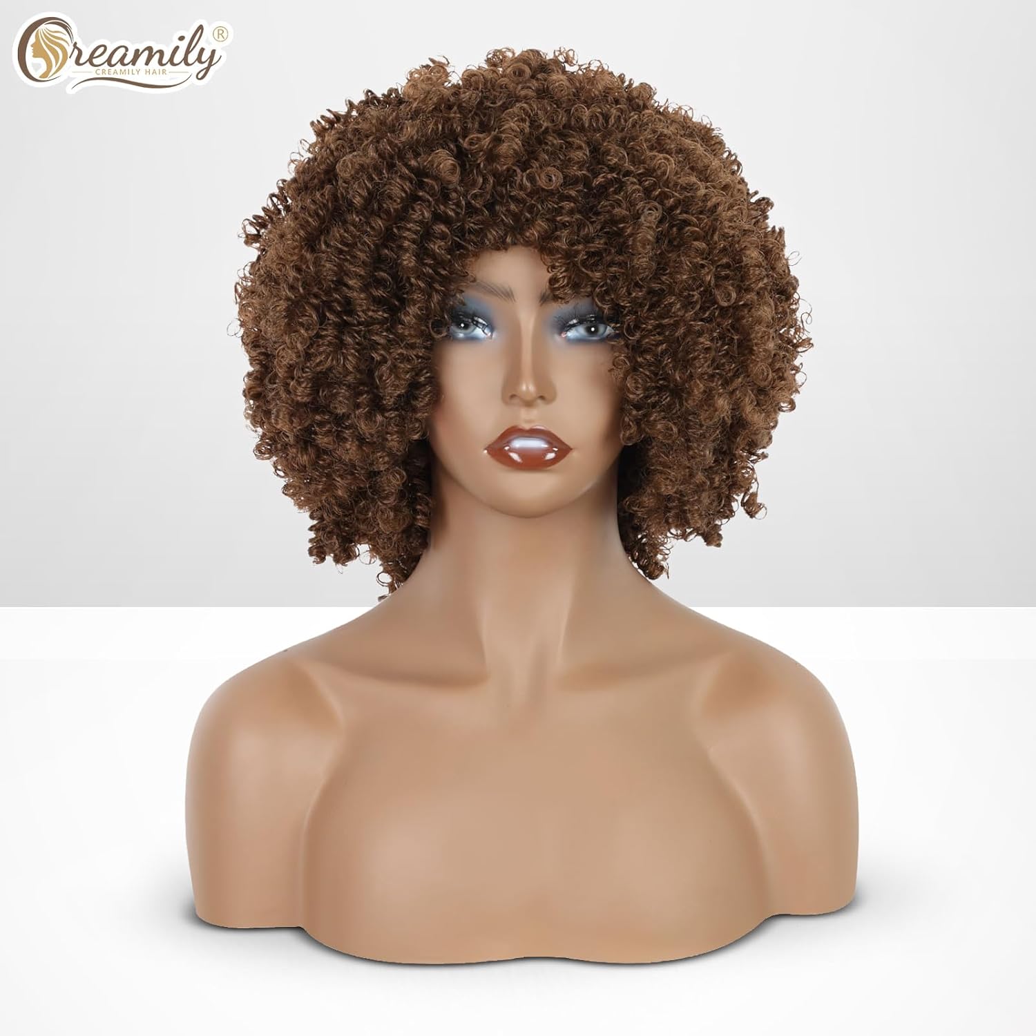 Creamily Afro Hair Wig For Women Full Head,Short Curly Wigs With Fluffy For Women,Brown Kinky Curly Synthetic 70s Afro Wig For Girls,Bouncy Full And Natural Looking Circus Disco 10Inch