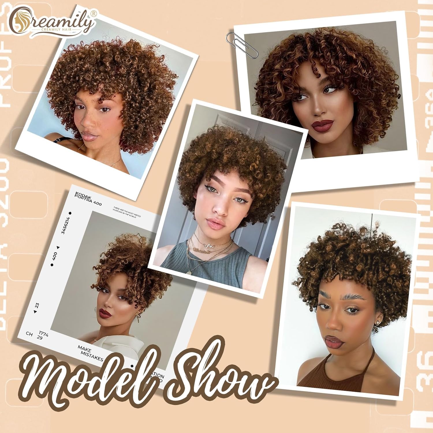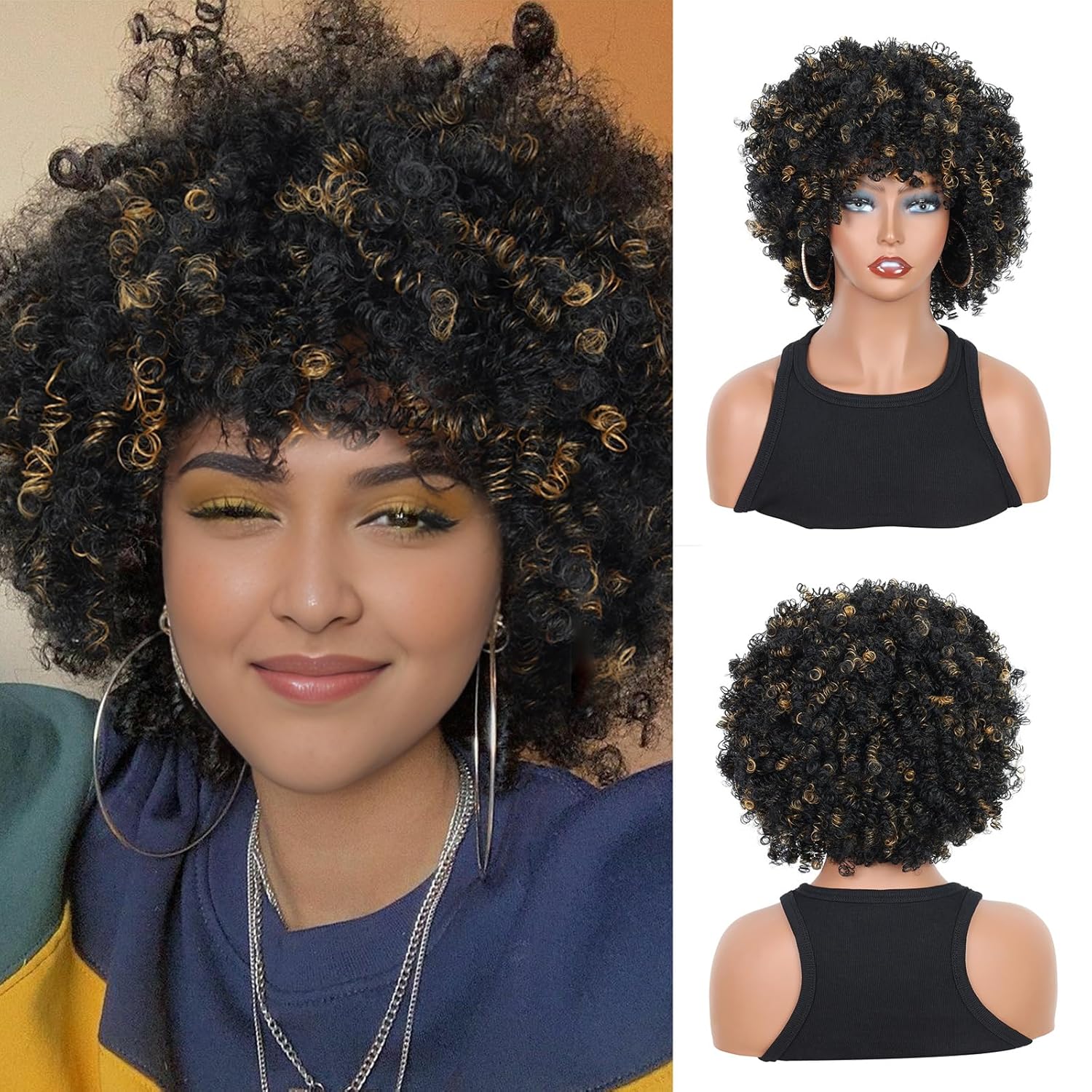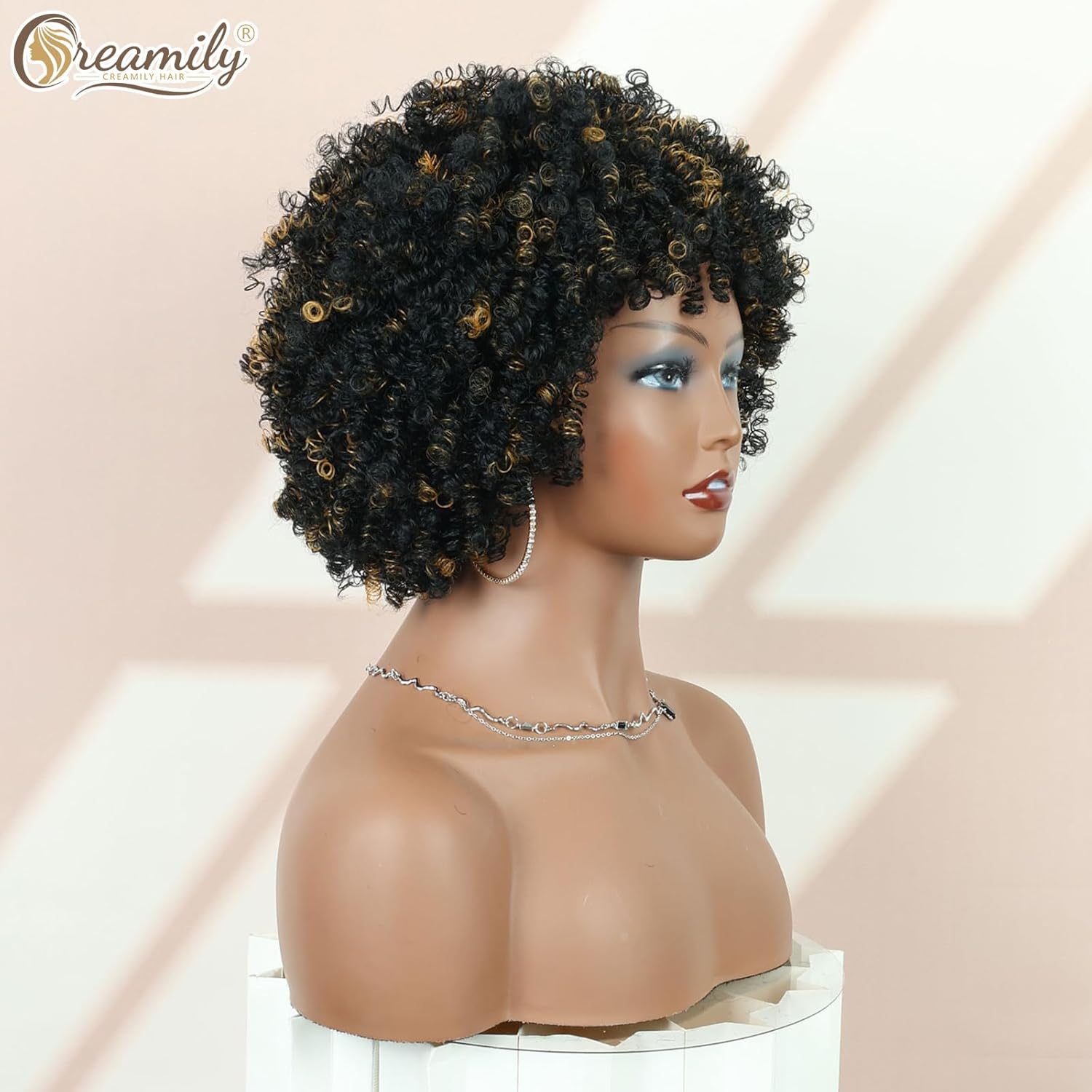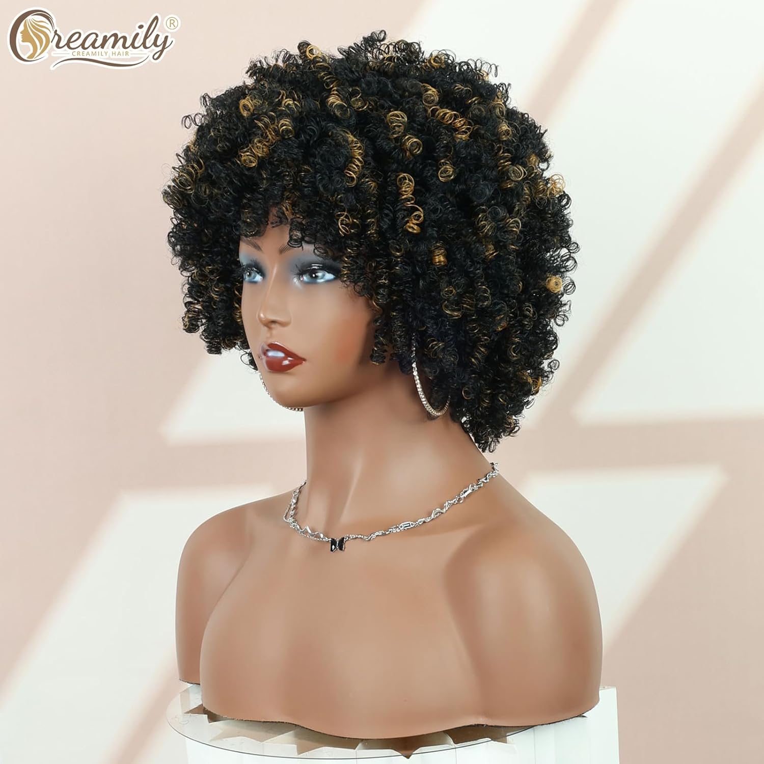 Creamily Afro Hair Wig For Women Full Head,Short Curly Wigs With Fluffy For Women,Brown Kinky Curly Synthetic 70s Afro Wig For Girls,Bouncy Full And Natural Looking Circus Disco 10Inch