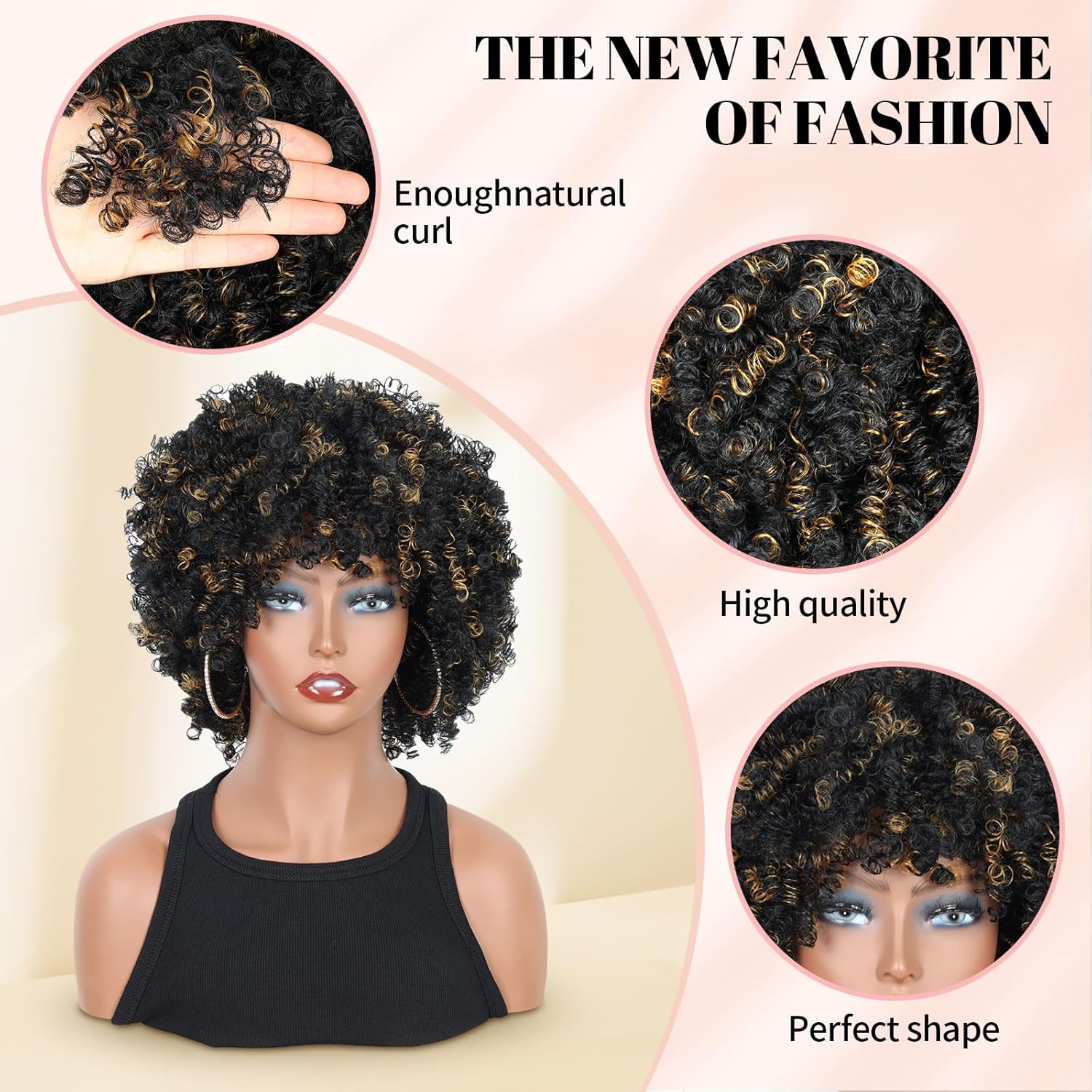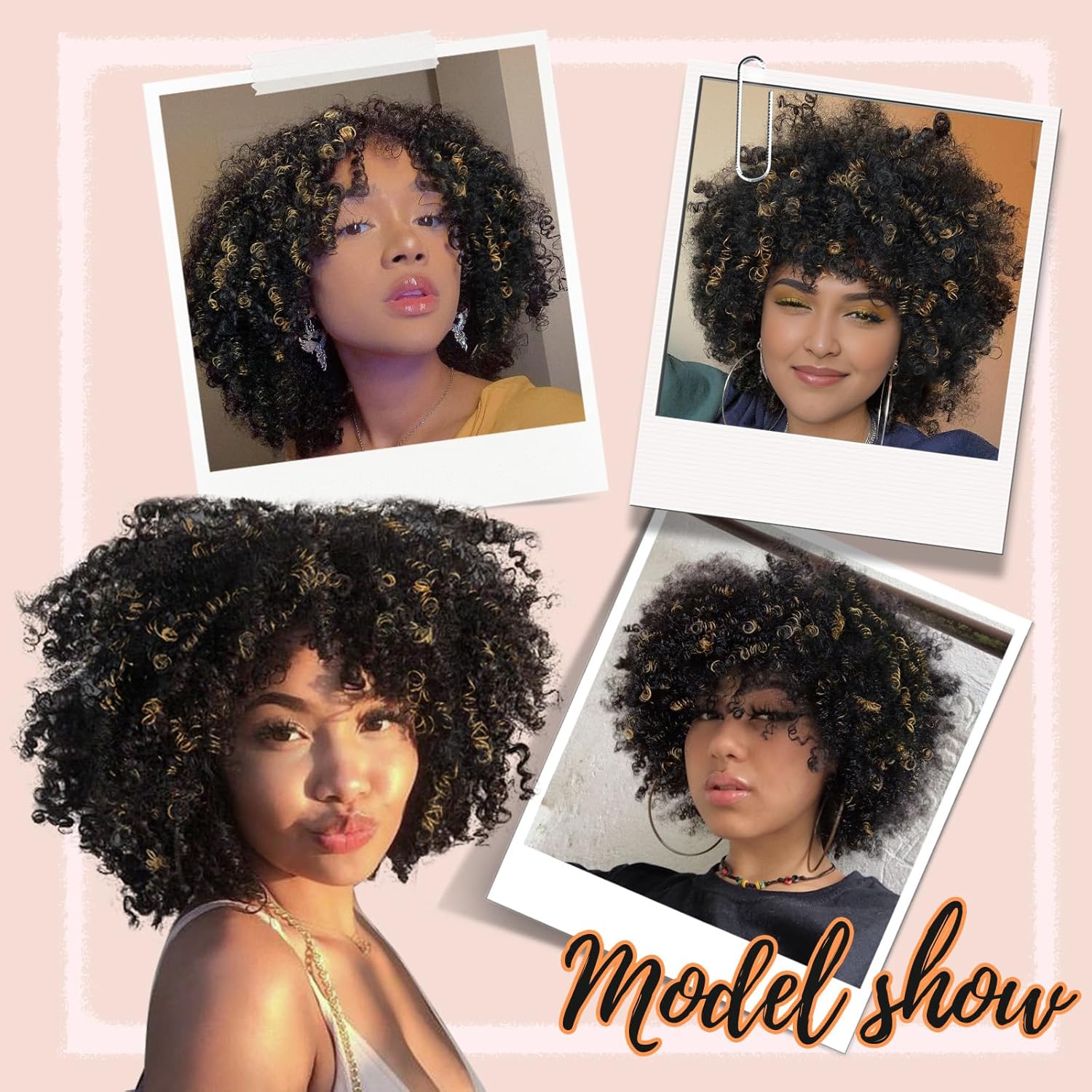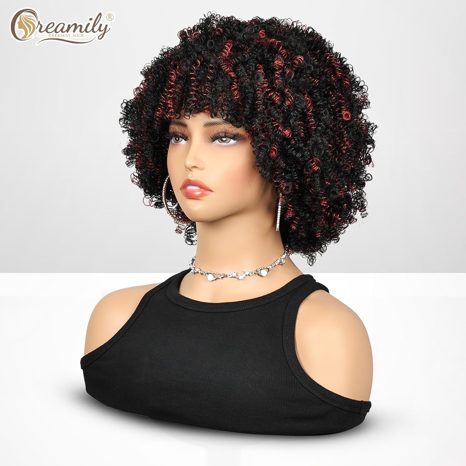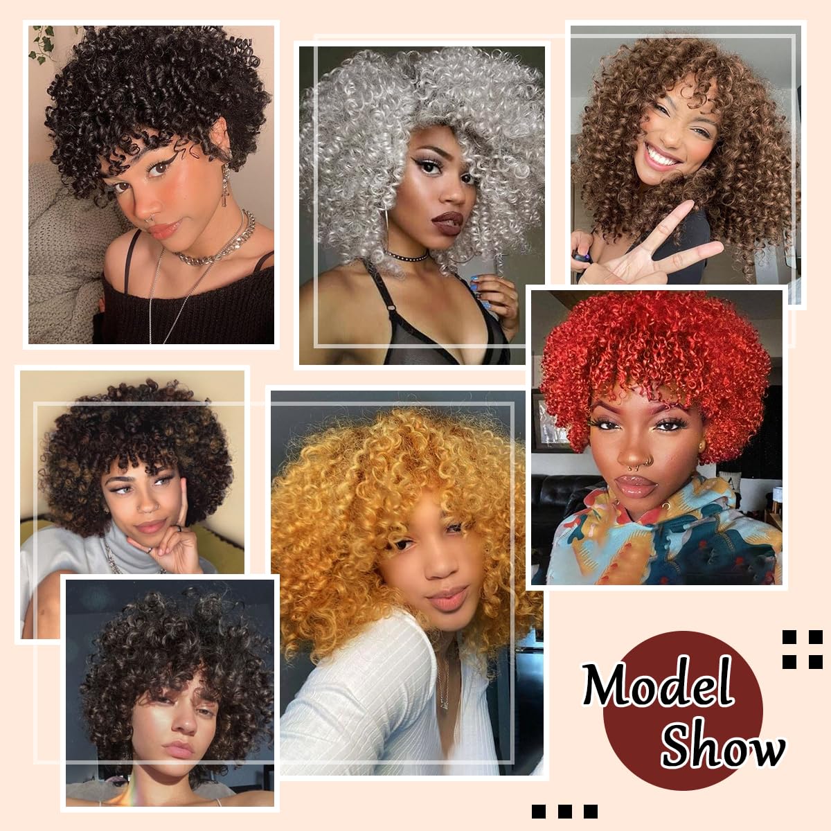 Creamily Afro Hair Wig For Women Full Head,Short Curly Wigs With Fluffy For Women,Brown Kinky Curly Synthetic 70s Afro Wig For Girls,Bouncy Full And Natural Looking Circus Disco 10Inch