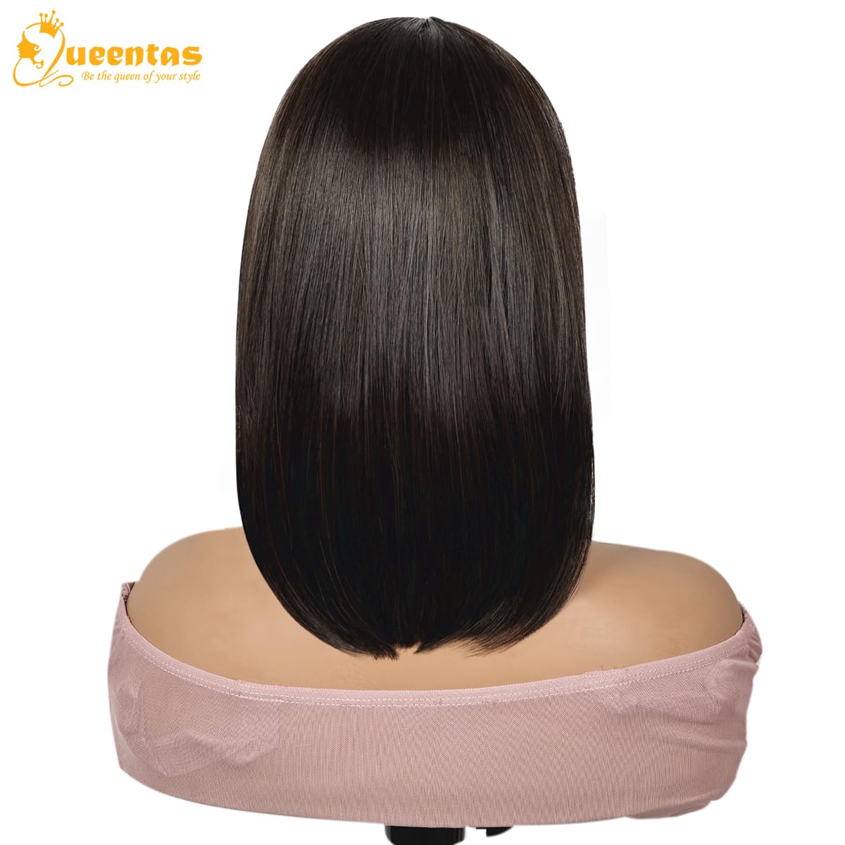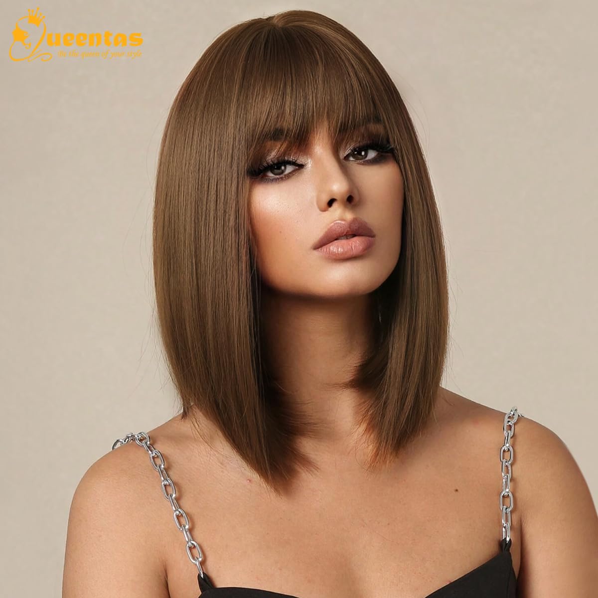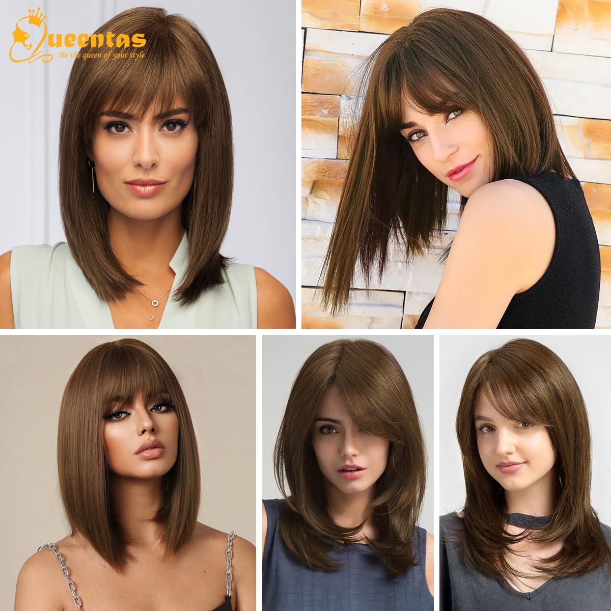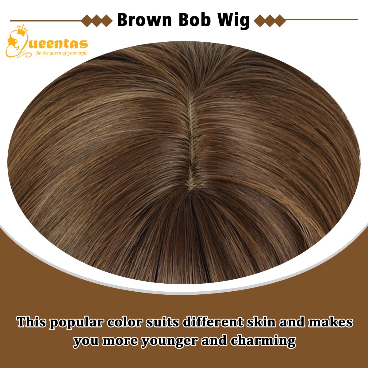 Short Brown Bob Hair Wig for Women Shoulder Length Full Head Straight Cosplay Diwali Synthetic Hair wig (14inch Dark Brown)