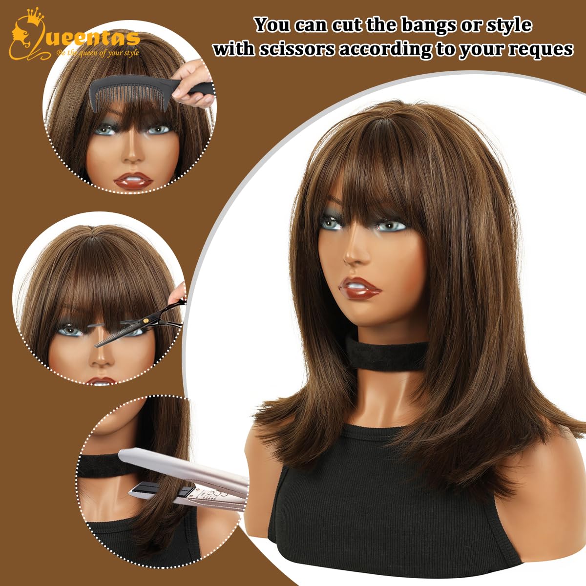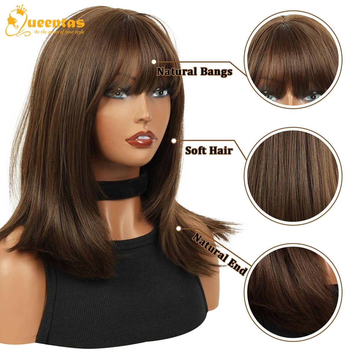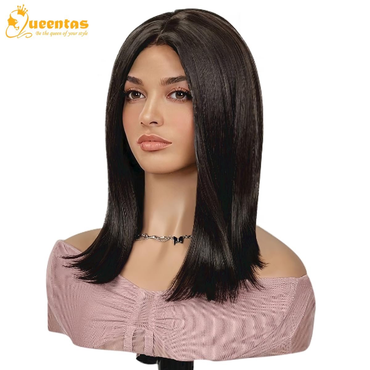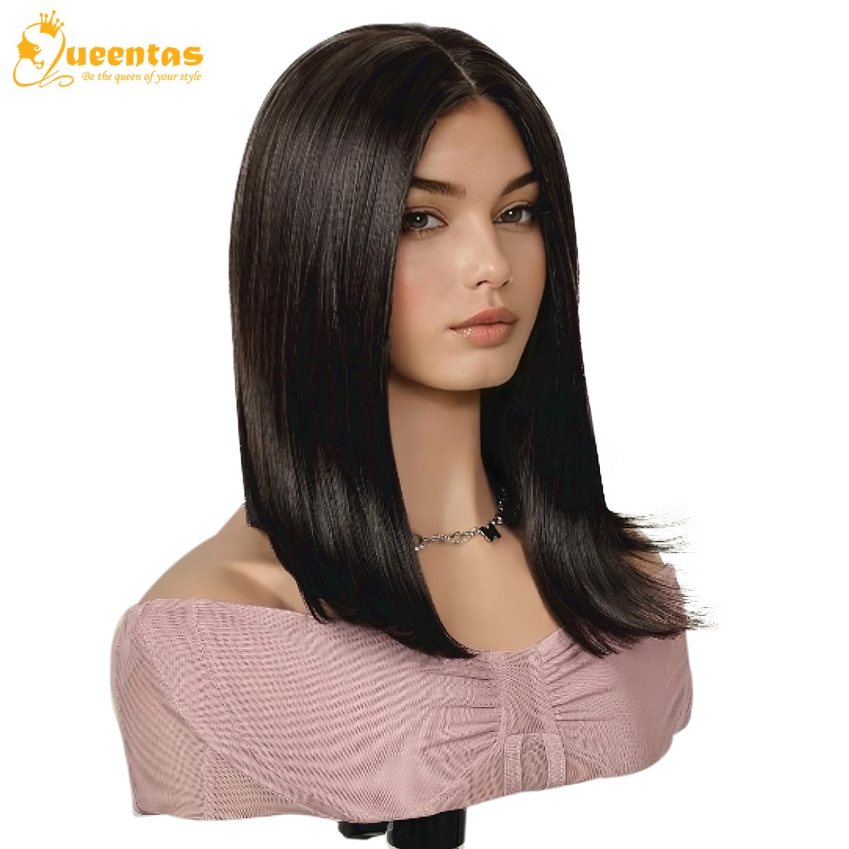 Short Brown Bob Hair Wig for Women Shoulder Length Full Head Straight Cosplay Diwali Synthetic Hair wig (14inch Dark Brown)