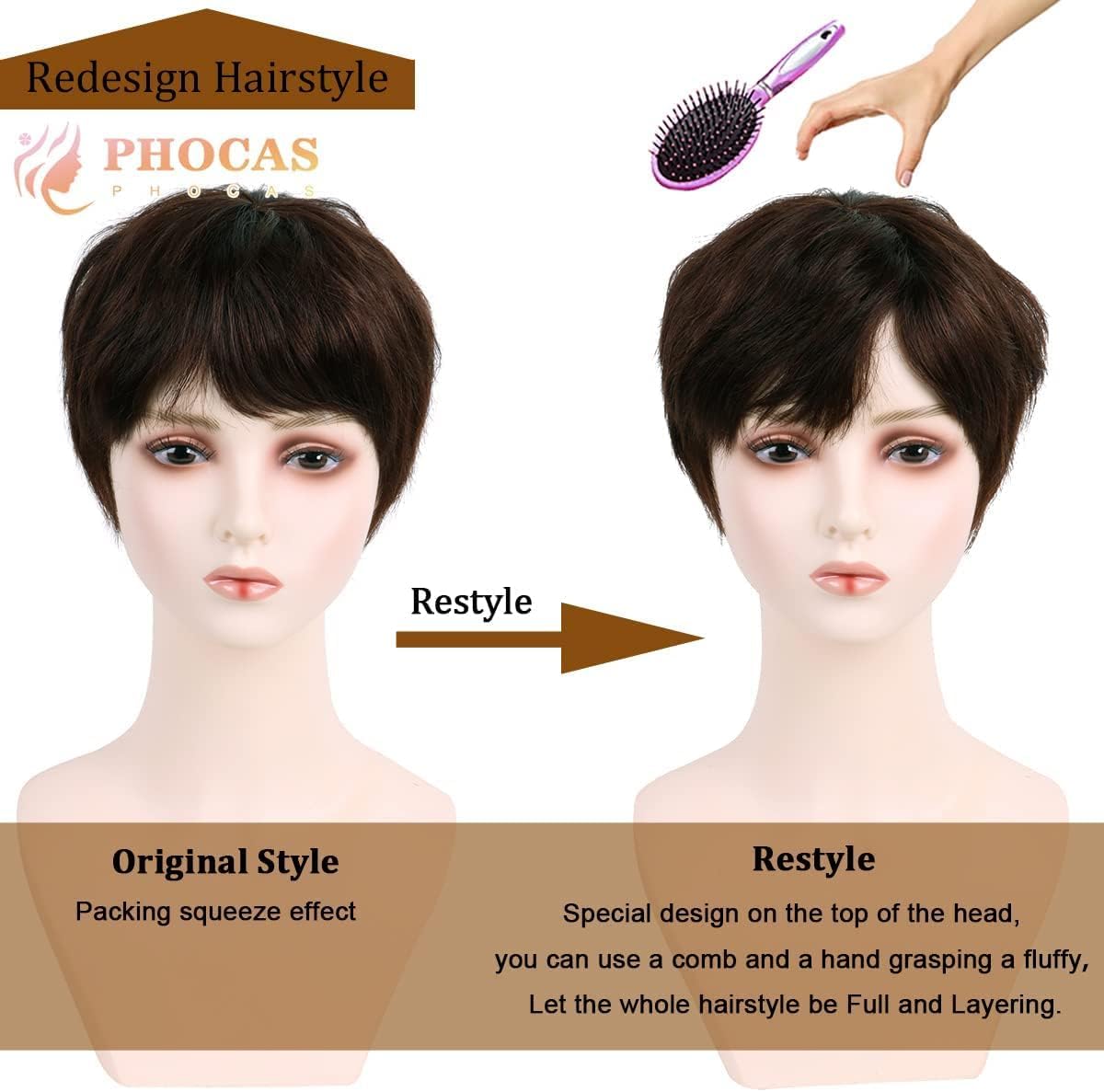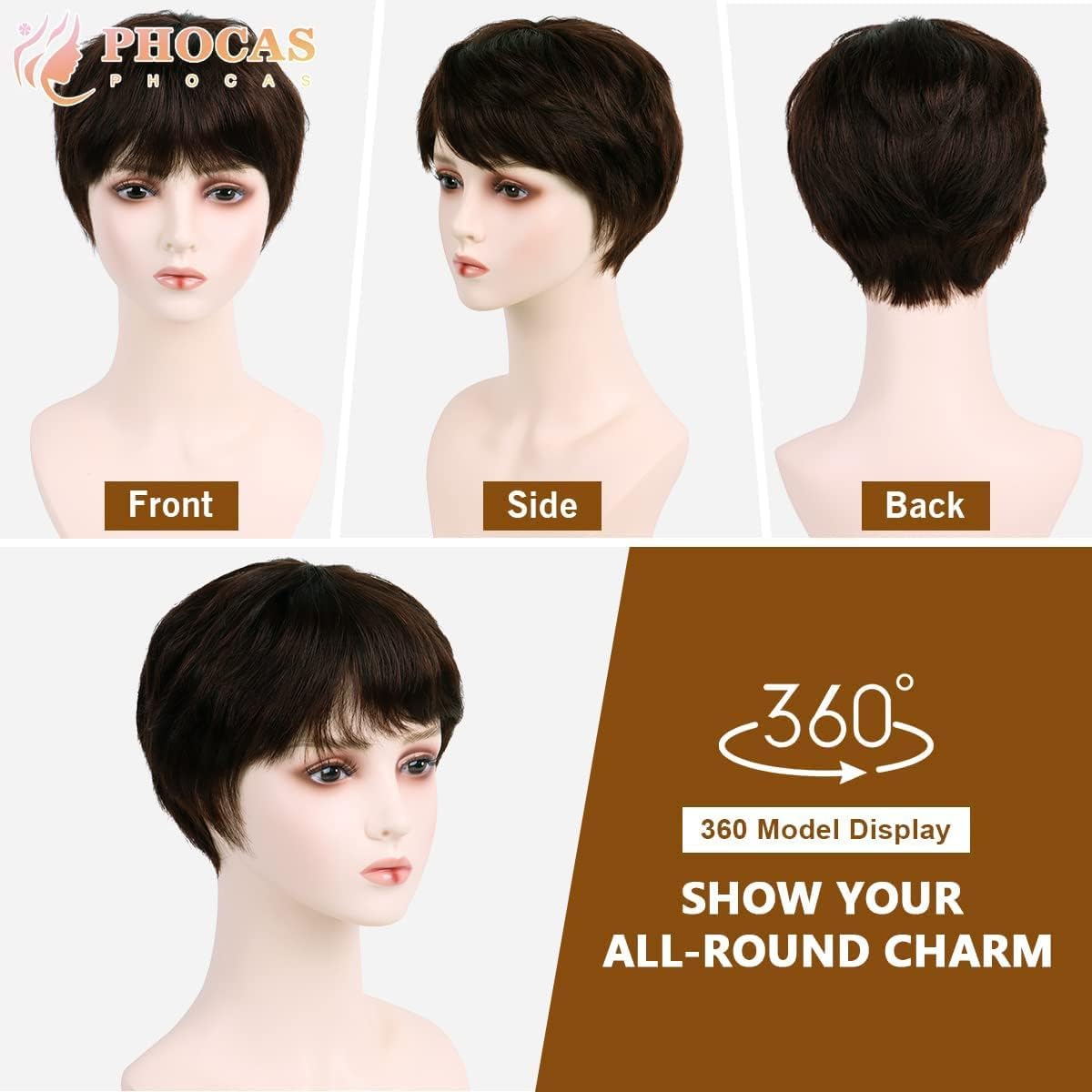 Short Pixie Cut Wigs Cute Boy Cut Brown Wigs for Women Synthetic Hair Natural Looking Wig With Bangs Daily Party Wigs, 150 Gram + 02 Wig Cap Free